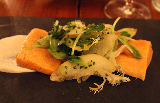 The other first course, a trout salad with endive and apples, was bright and lively, with the trout having been lightly pickled.