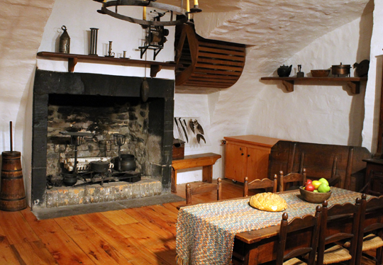 The kitchen was fun to see, mostly because of the slatted contraption you see at the upper right corner of the fireplace. Can you guess what it is?