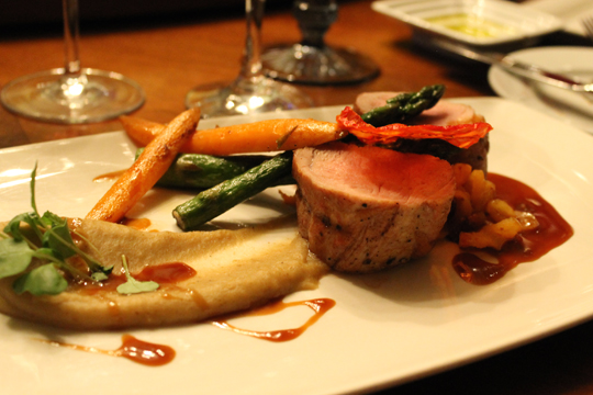 The next two courses made up for that. The pork medallion was quite juicy, its meaty flavor married with dried fruit and creamy, pureed Jerusalem artichokes.