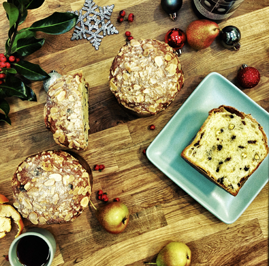 And panettone — scented with vanilla, citron, Meyer lemon, raisins, pistachios and Valrhona chocolate pearls — is $14.