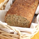 It bakes up with a crisp crust and a dense, but soft crumb. It’s very hearty tasting and the sunflower seeds add a nice pop of crunch. With its profusion of whole grains, this is a filling bread to nosh on. One slim slice for breakfast will definitely set you for the morning.