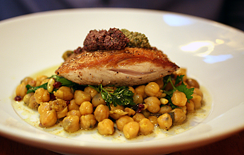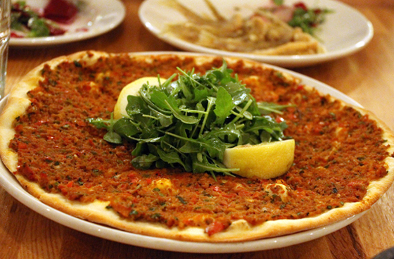 OK, I do love my carbs, I must admit. So, another must-try was the Lahmacun flatbread with minced beef, chiles, onions, garlic and paprika ($11). The size of an individual pizza, the round flatbread is cracker-thin. The topping is like thick, tangy tomato paste mixed with finely minced meat. A garnish of arugula adds a bite of fresh greenery.
