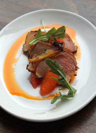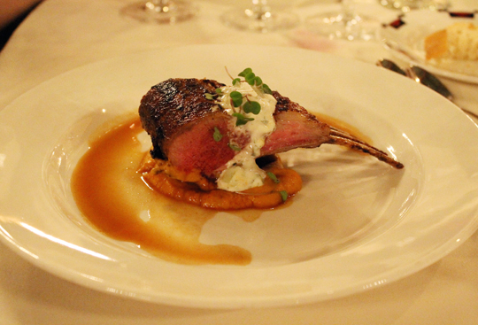 Duarte’s main course was a perfect taste of Morocco with yogurt-marinated rack of lamb atop vadouvan carrot puree and yogurt raita.