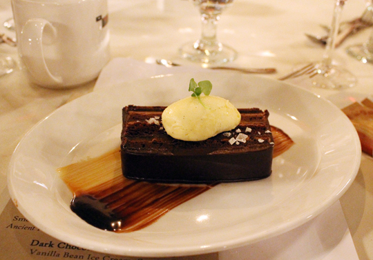 Dessert was a sizable slab of dense dark chocolate-caramel cake that had a nice hit of sea salt over the top.