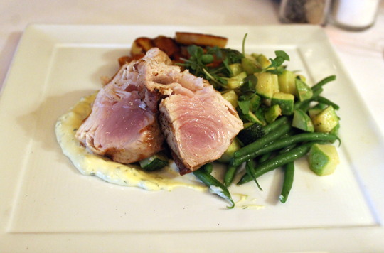 A special of seared albacore was cooked nicely so that it was still a little pink inside. Local squash and potatoes rounded out the plate.
