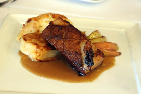 The night I was there, the restaurant featured a clever take on chicken and waffles. Only the chicken was swapped out for fried sweetbreads ($14) atop a vanilla-infused waffle all crowned with grilled nectarines, smoked maple syrup and salted peanut brittle. It was down-home yet uptown at the same time. An amazing dish.