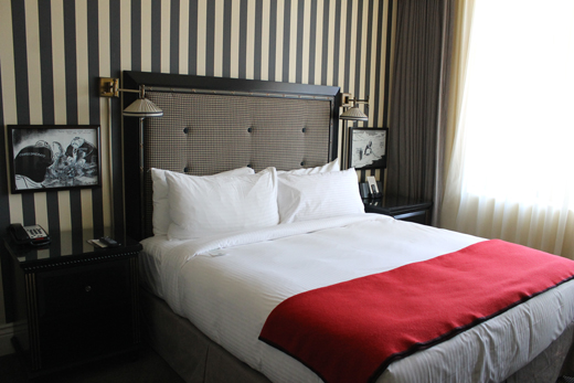 This unique boutique hotel sports 198 rooms with only a few decorated alike. Mine was done up in bold striped wallpaper with framed old-school political cartoons on the walls.
