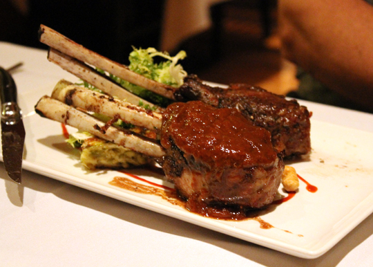 The grilled Rosen Farms rack of lamb ($42) is the type of dish that makes jaws drop. Massive in size, with expertly frenched bones, it was accented with Green Gage plum chutney, pomegranate molasses and hazelnuts.