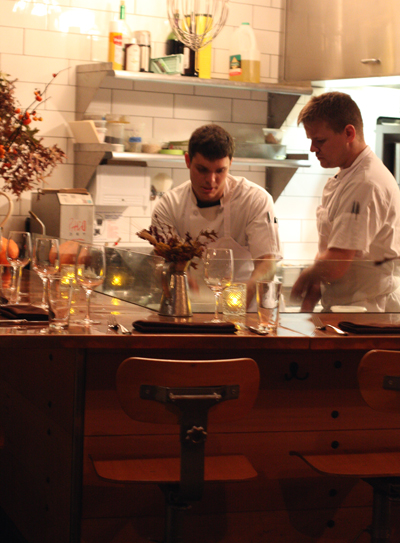 Imagine a hipster lumberjack as the ideal customer, and you get an idea of the vibe here. There are animal heads on the wall, dramatically stacked cords of wood, and specially designed wood tables with drawers that pull out to reveal your menu and silverware.