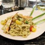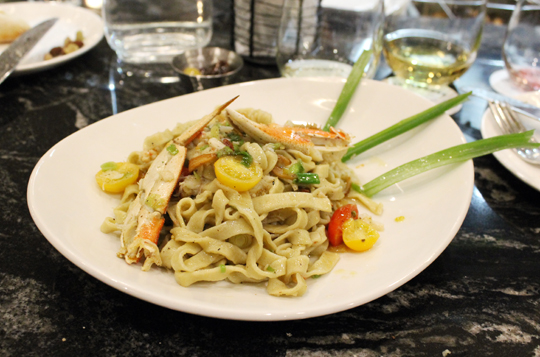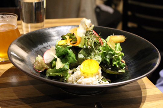 Baby farm greens ($14) from Campbell’s Ecopia Farms make any salad special with their intense flavors. Here, a large fluff of greens hides a generous amount of Dungeness crab, all in a bright lemon vinaigrette.