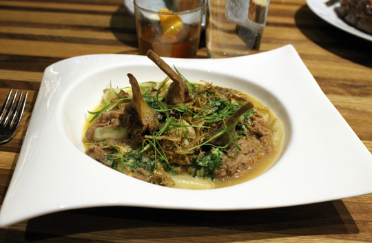 Shelton and Marino often can be found behind the bar, crafting the restaurant’s signature cocktails, such as the Winter Fashion ($12), a blend of cognac, walnut liquor, gum syrup and bitters. The cocktail menu is arranged from lightest to heaviest options. The Winter Fashion was positioned in the last third of the menu, and it was plenty strong yet caressed the palate with its orange notes and hints of nuttiness.