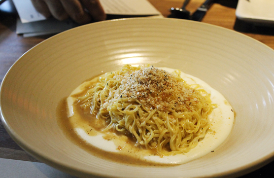 Pastas are made in-house and are worth the carb attack. Supple tagliarini strands nested around a slow-cooked egg. Break the yolk and mix everything together for a luxurious taste.