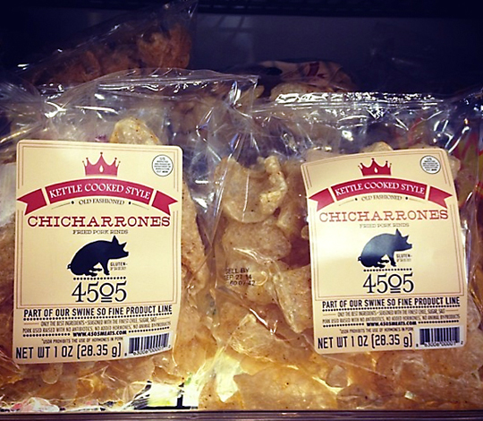 Find 4505 Meats “Kettle Cooked Style” chicharrones at Bi-Rite Markets or order them wholesale to enjoy. A 1-ounce bag is about $4.