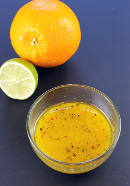 The recipe for this easy “Citrus Sauce” first appeared in Everyday Food in September 2004. After cooking down the citrus juices, whisk in a little sugar, olive oil and Dijon mustard. That’s it.