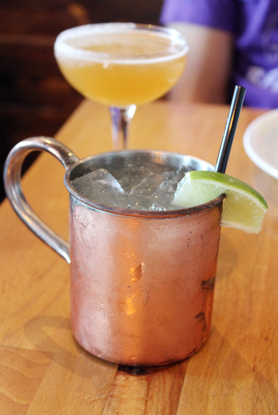 My husband and I, who paid our own tab, settled in with a cocktail. A Moscow Mule ($10) for me, which was served in the classic copper cup. Made with vodka, plenty of lime and house-made ginger beer, it packed a nice tickle of heat on the back of the throat. My husband likened it to an adult lemonade. He opted for a Sidecar ($10), which was citrusy, smooth, just boozy enough and served prettily in a sugar-rimmed glass.