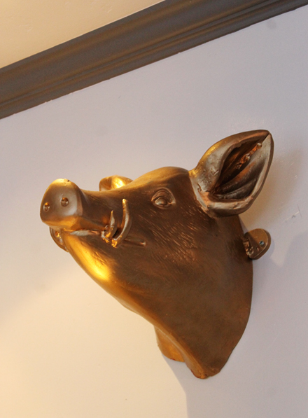 It’s easy to see why. It’s a loud, lively place with creative cocktails and a menu sure to please most any palate. It’s got an idiosyncratic vibe, what with its framed vintage album covers from the Blues Brothers and Culture Club on the wall, not to mention a gleaming bronze boar head mounted as if it’s keeping an eye on the kitchen.