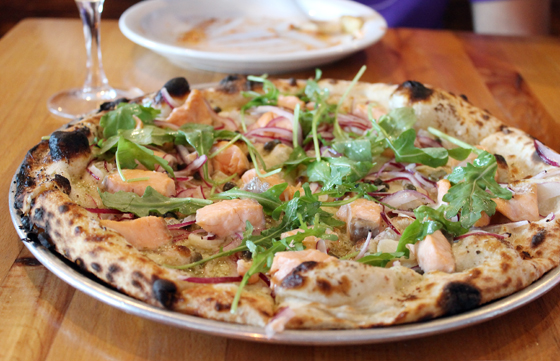 If this state is going to ever get rebooted, I want it to come back exactly like the “California 2.0” ($15). It’s a riff on Wolfgang Puck’s famous smoked salmon pizza. Only here, you get super moist chunks of fresh salmon — and a lot of them, too. A smear of dill aioli adds richness. Arugula, onions and capers add freshness and piquant saltiness. Think of it as a lox bagel in pizza form. Who wouldn’t love that?