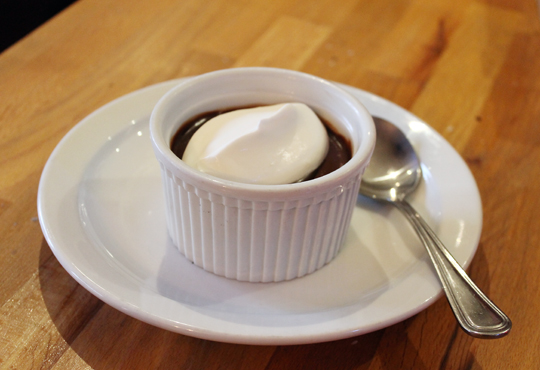 Desserts are limited. There’s a choice of two, so I went with the chocolate pot de creme ($8) with whipped cream.