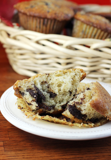 That’s because there’s no getting around it. These muffins are rich, tender, and super chocolatey.รย They are like chocolate-chip cookies in muffin form.