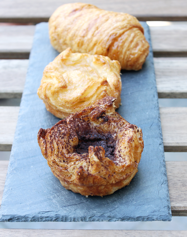 The croissants, more oblong than the usual crescent shape, are light, flaky and super buttery.