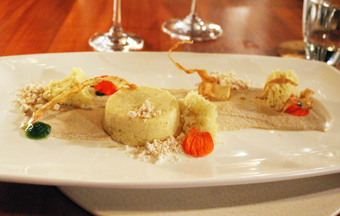 Dessert was an unusual parsnip cheesecake, its nutty flavor heightened by a hazelnut puree. Chef Bartolome made us guess the dots of green puree on the plate. Would you believe it was chive oil? Yes, on a dessert. The oil was sweetened slightly, so what could have been totally wacky was actually just rather daring.
