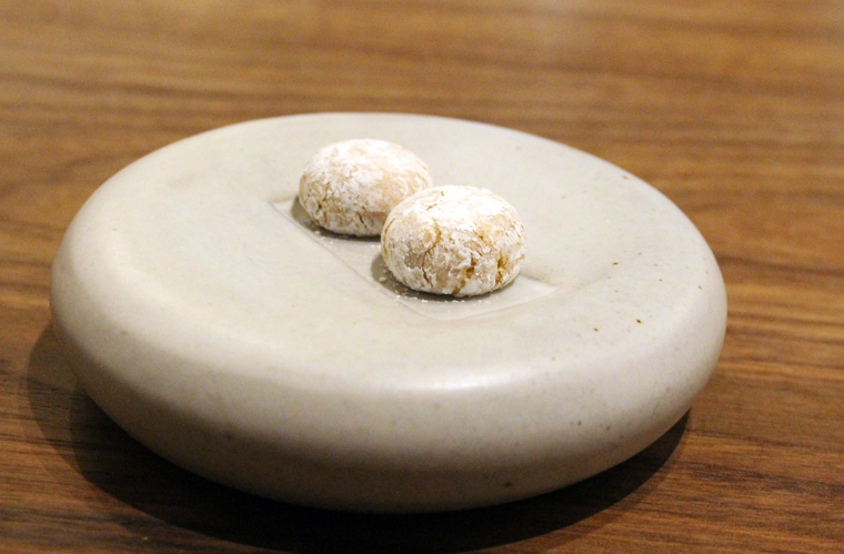 The evening ends with tiny, chewy almond cookies.