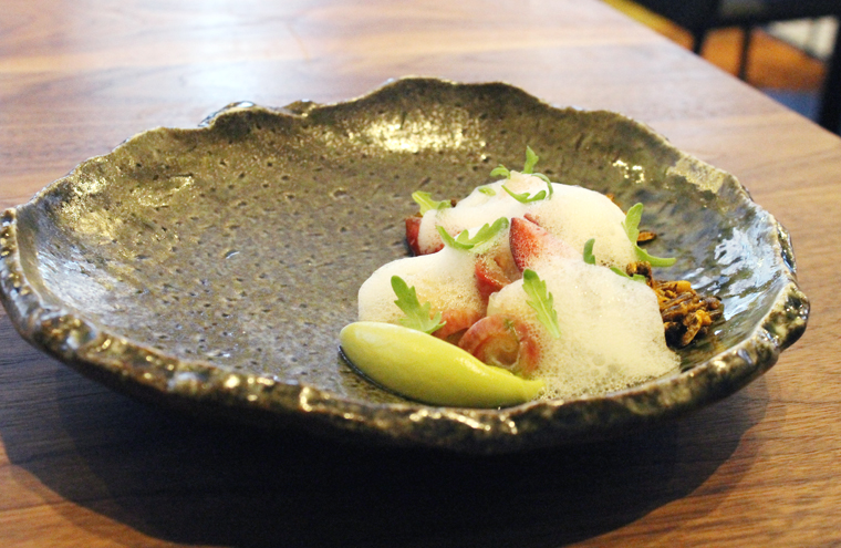 Silky slices of raw kanpachi ($19) get a lift from floral ginger foam and crunch from toasted puffed rice. Pearls of finger lime add just the right burst of citrus.