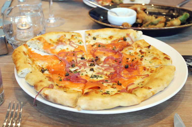 The restaurant smokes its own New Zealand-farmed Ora King salmon, and it’s a silky stunner, especially on pizza ($21). The crust, crispy in the center and bready on the edges, has a nice developed flavor. Along with the smoked salmon, the pizza is draped with Bellwether Farms crescenza, mozzarella, pickled red onions, fried capers, lemon zest and herbs. It’s all the good stuff that would go great on a bagel on a pizza instead.
