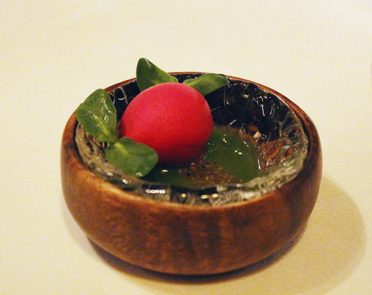 For myself and dining companion Food Fashionista, it started that night with that agua fresca, a jade-green liquid of jicama, celery, fennel, cucumber, sorrel, mint and fermented turnip. It tasted refreshing and good for you.