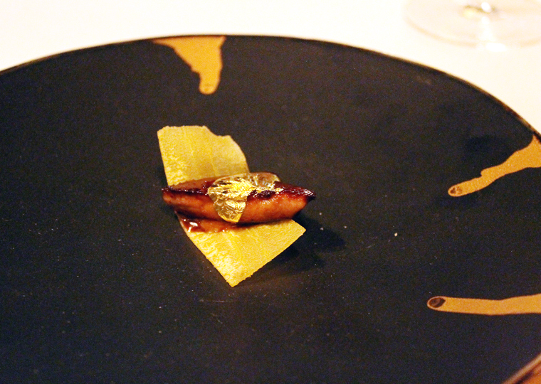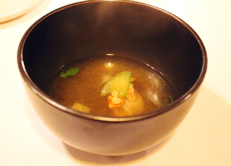 Bone broth makes an appearance next. Only this is made from squab bones with a touch of chipotle. Uncover the black handle-less cup and breathe in the intoxicating aroma of the long-simmered, restorative liquid.