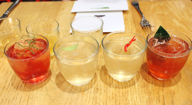 The Shed also makes its own vinegars that are turned into spritely shrubs. There’s rice wine vinegar with plum and ginger; champagne vinegar with peach; red wine vinegar with bluberries; and champagne vinegar with watermelon and pink peppercorns. You might be skeptical about drinking vinegar, but really, it makes for an invigorating sip that’s not painfully sour in the least.