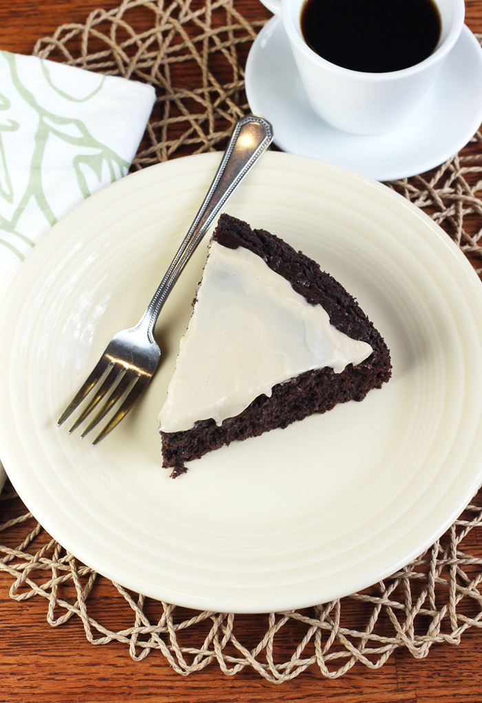 The result is a moist, rich cake with a deep, bitter chocolate-y edge. The coffee is not overpowering. You taste it in the glaze, but in the cake, itself, it merely plays up the sophistication of the dark chocolate.
