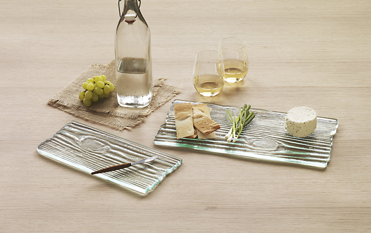 Annieglass’ Grove cheese boards, which are imprinted using real wood grain from a tree. (Photo courtesy of Annieglass)