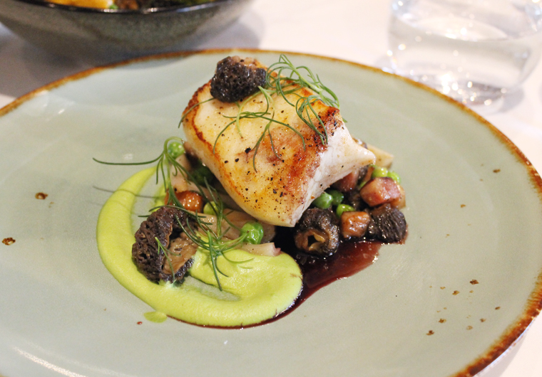 I went the fish route, opting for Alaskan halibut ($45), which was beautifully moist and nicely seared on top. Oregon morels and English peas were perfect seasonal accompaniments. But of course, you have to dial it up a bit, so hiding underneath the fish is a dollop of bacon confit and pickled ramps to give this lean, mild, flaky fish that much more oomph.