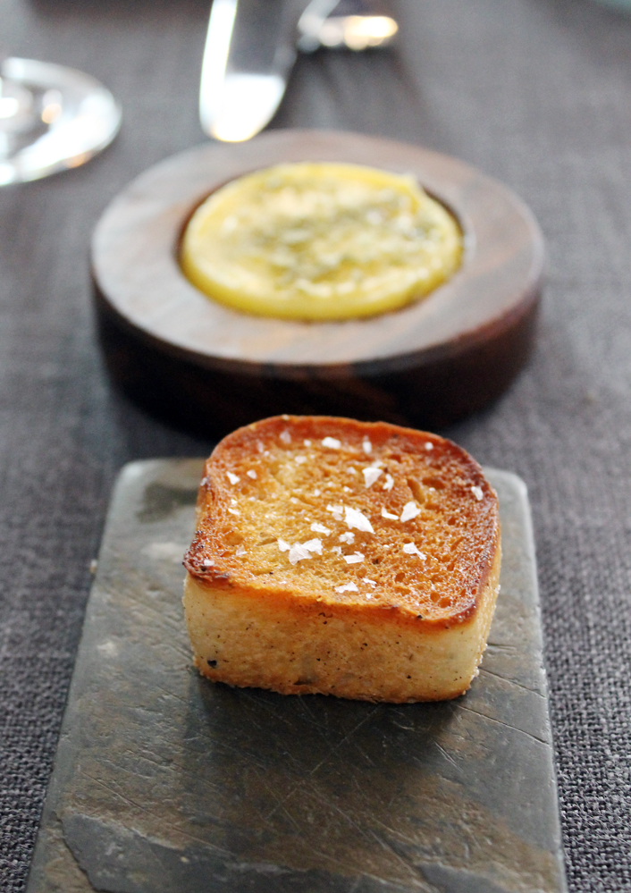 The first bread arrives, baked with grains of paradise, and served with some of the best butter you’ll ever enjoy. It’s Straus butter whipped with yogurt and seasoned with herb salt. What makes it so great is its consistency — so utterly spreadably soft that it’s verging on meltingness. It’s hard not to want to spread it on everything and anything besides this slab of warm, toasted golden bread.