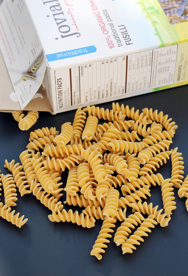 The Organic Einkorn Fusilli is made with 80 percent of the whole grain, with some of the bran and germ removed. As such, it’s more tender and less dense than full-on whole wheat pasta. It cooks up easily, and has a subtle taste of grain.