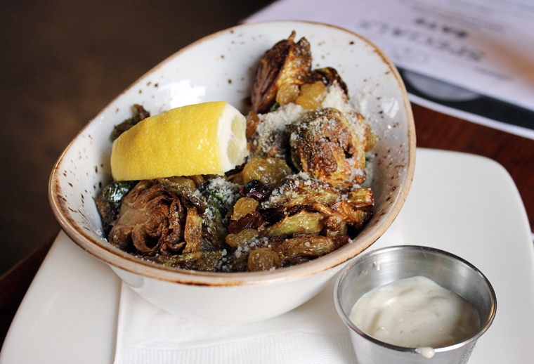 The mac ‘n’ four cheese ($4 for a small; $8 for a large) is expectedly creamy and rich, and boasts a nice panko topper. The Brussels sprouts ($10) are fried to a crisp, and tossed with golden raisins and vinegar for singsongy sweet-tangy deliciousness.