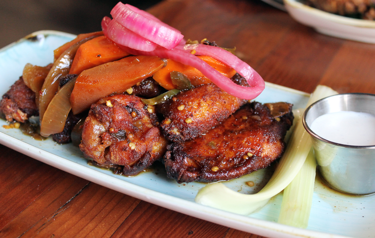 The house-smoked wings ($14) are brined in the juice leftover from the house-made pickles before being smoked, giving them a ever-slight edge of sharpness mixed in with all that smoky goodness.