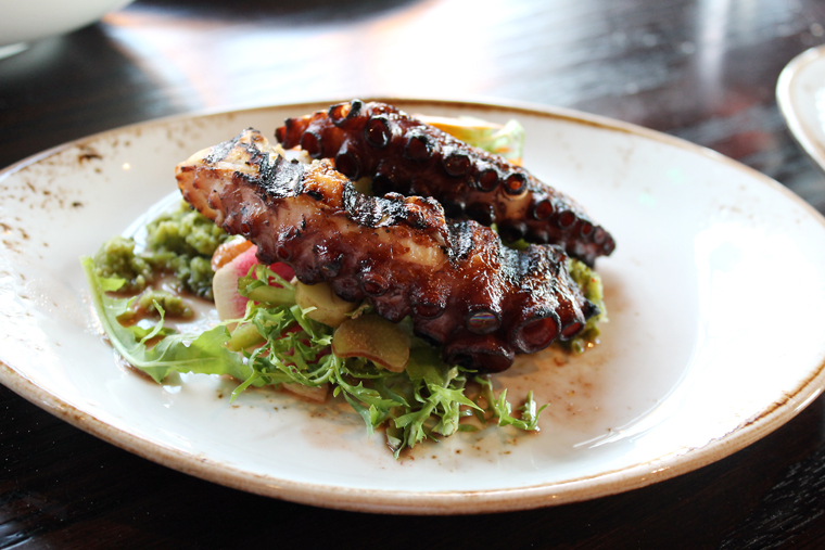 Charred Spanish octopus ($15) brings tender pieces of tentacled legs over buttery new potatoes with a piquant green olive tapenade.