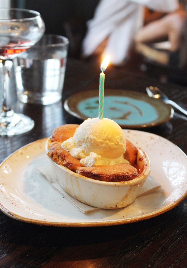 For dessert, the birthday gal chose the warm, ice cream-crowned peach cobbler. And the chef sent out an order of beignets stuffed with caramel. They were puffy, light and everything a good donut should be.