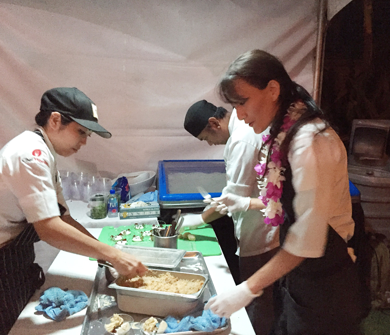They were all part of the festival’s “A Chef’s Paradise. The walk-around evening repast, held on the lawn at the Sheraton Maui Resort & Spa, featured cocktails, wines, and creative bites.