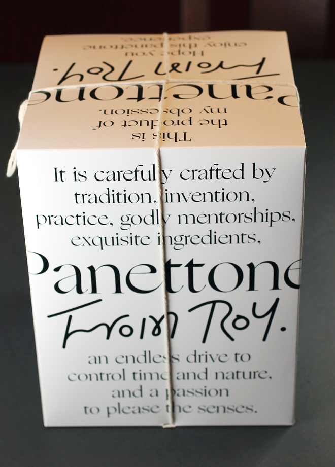 Bea: Wow, kudos to you for making your own panettone. That’s definitely not an easy endeavor. I don’t think Roy will let on about the secret to his incredibly ethereal yet buttery texture. But he says a lot of it does have to do with using wild yeast.