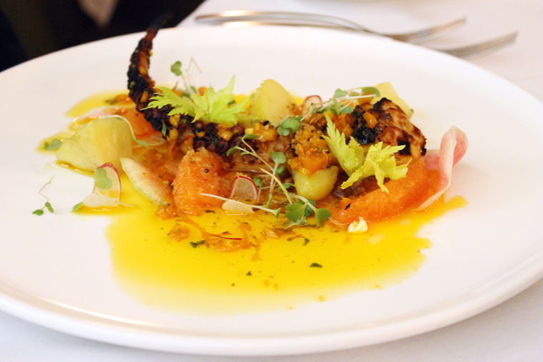 We also tried the charred octopus ($17), tender and redolent of earthy chermoula spices that was brightened by fresh orange segments.