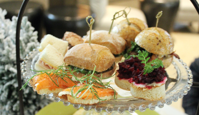 It may not be a manly endeavor, but it’s definitely a delightful and delicious one. After choosing your tea, which arrives in a heavy iron pot, a three-tier platter of goodies is set before you. The top layer holds mini sandwiches: duck ham and bourbon mustard, cured salmon and olive oil cream cheese, roasted beet relish with honey-thyme whipped goat cheese, charred eggplant with mushroom duxelle, Nutella and hazelnut, and even roasted turkey with American cheese on Wonder Bread (crusts cut off, but of course).