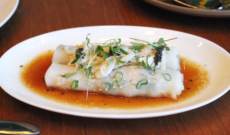 Cheong fun ($16) is always a must-order for me at dim sum restaurants. Though, I’ve never had one before garnished with such luxurious touches as Dungeness crab and caviar. The rolled-up rice noodles were custardy as they should be, though they may have lacked some of the chewiness expected.