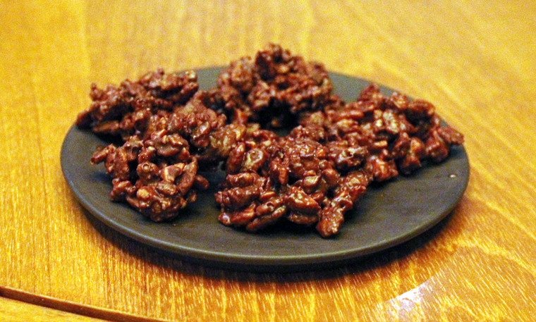 Clusters of chocolate cashew puffed rice were offered on a plate for the final bites.