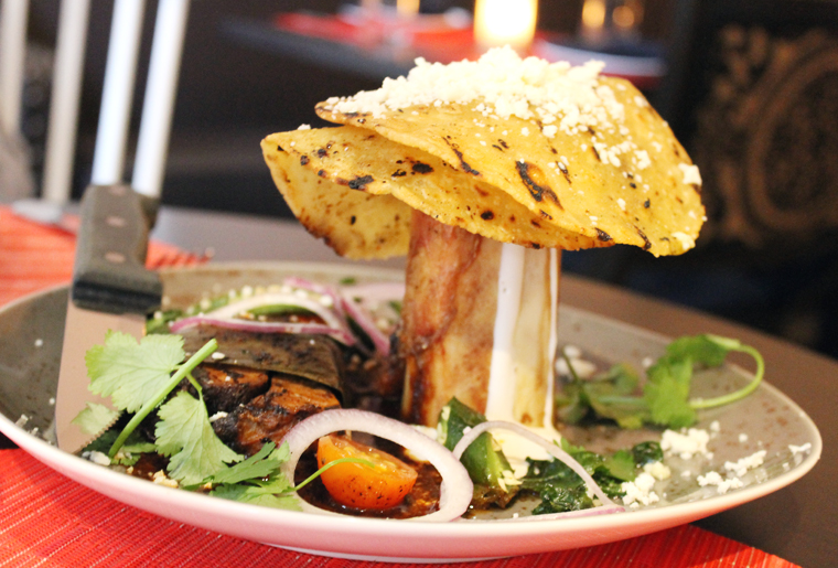 The Barbacoa ($20) aims to be the signature dish of the restaurant, and it’s a good one to lay claim to that. Lamb shoulder is rubbed with chiles and epazote, then wrapped in banana leaves before being slow-roasted overnight. The meat is sticky-tender like the best short ribs. It has a smoky, complex taste that reminded me of Mexican mole. It comes not only with a marrow bone, but corn tortillas made with marrow mixed into the masa. You don’t get marrow spoons, however, so you’ll have to use your knife carefully to extract the rich, meat butter-like marrow out of the bone. The griddled tortillas are tasty, though a bit greasy, maybe owing to the marrow in them.