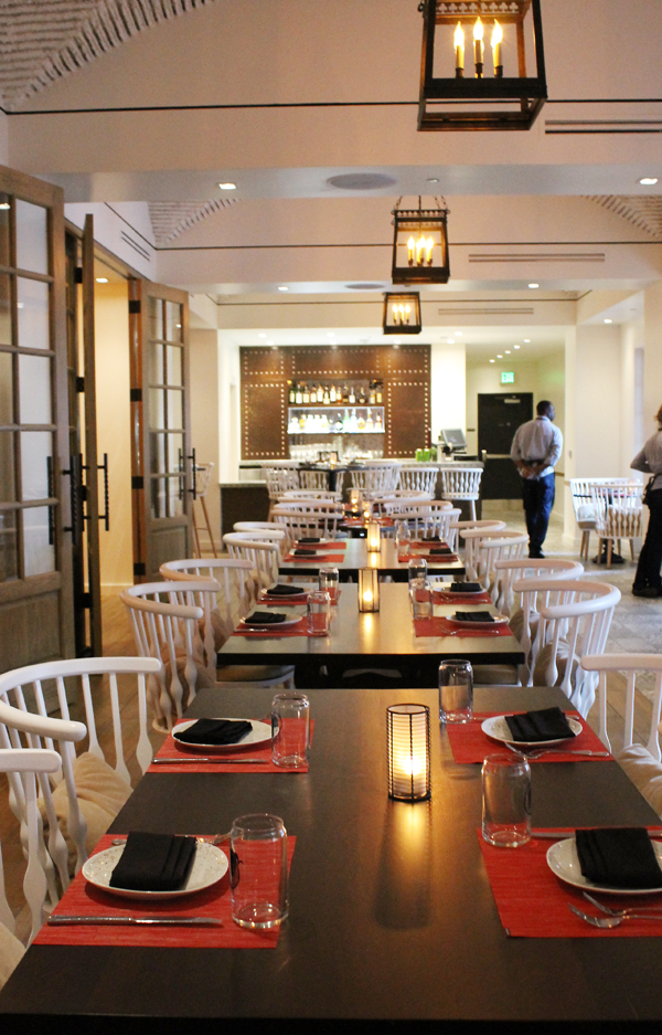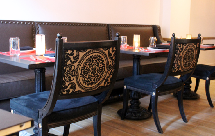 I was invited in as a guest of the restaurant recently to check out its new look, which sports brass tack-hammered, dark banquettes, white curved-back chairs, and Moorish accents.