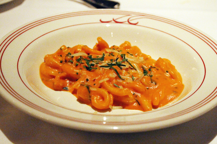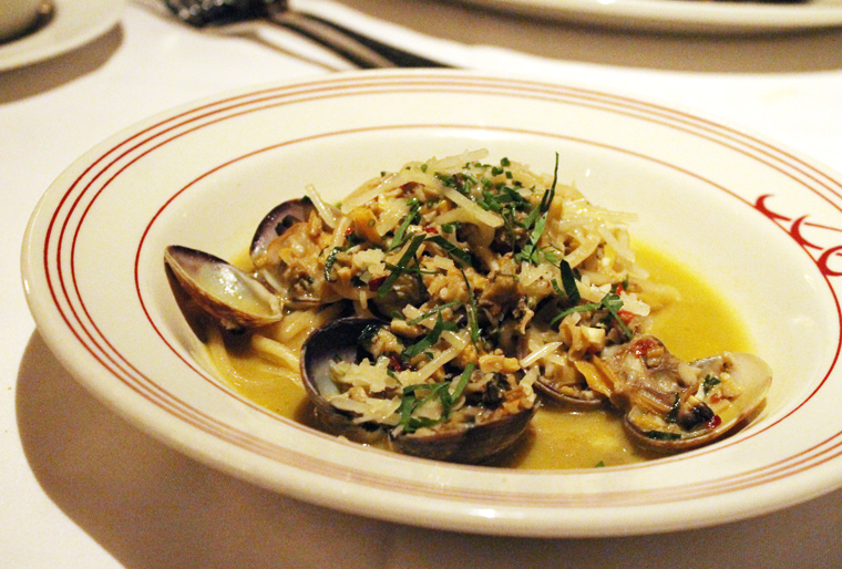 In a nod to its Italian origins, Alfred’s recently started offering house-made pastas. Being a carb lover, I tried two of them in half-size portions ($13 each): buccatini loaded with Manila clams, garlic and parsley in a silky brothy sauce that clung to the toothsome noodles; and strozzapreti, hand-rolled pasta enveloped in a rich, thick, spicy tomato-vodka sauce.