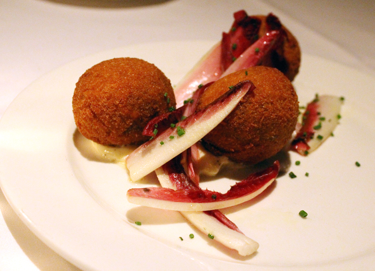 I was set to order a Negroni when the server suggested instead the Mezzaluna ($14), and I’m so glad he did. It’s Alfred’s riff on a Negroni, made with mezcal and Nola Coffee Liqueur, of all things. I had my doubts, but the smokiness of the mezcal really was nicely accentuated by the bitter hit of the coffee. The cocktail still possessed that lovely bitter orange I love, too.